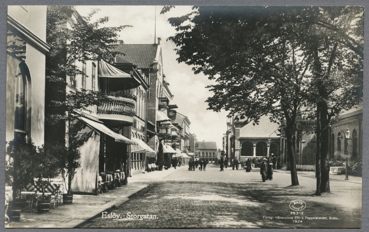 Vy över Storgatan i Eslöv med stationen till höger.
