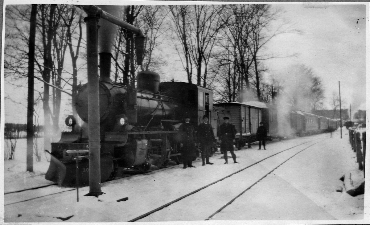 Snälltåg nr 1 i Norsholm. Norsholm - Västervik - Hultsfreds Järnvägar, NVHJ lok 30.