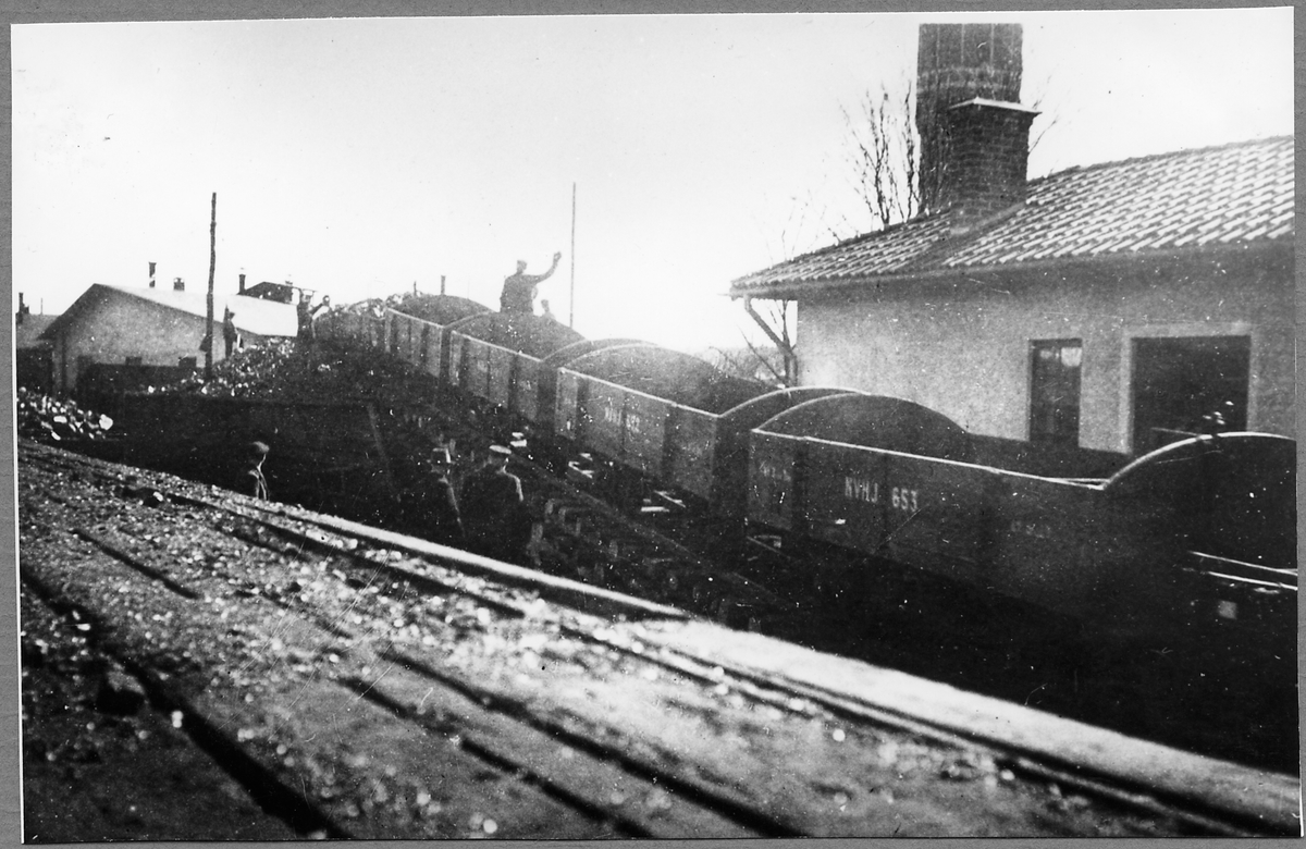 Lossning av kol i Västervik. Norsholm-Västervik-Hultsfreds Järnväg, NVHJ Kolvagn 653.