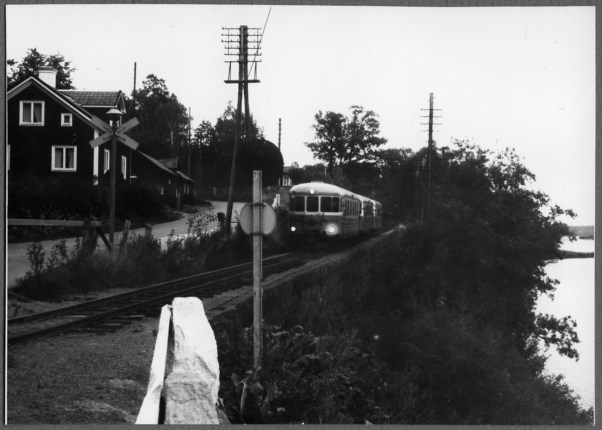 Rälsbusståg Statens Järnvägar, SJ YP på väg in till Verkebäck.