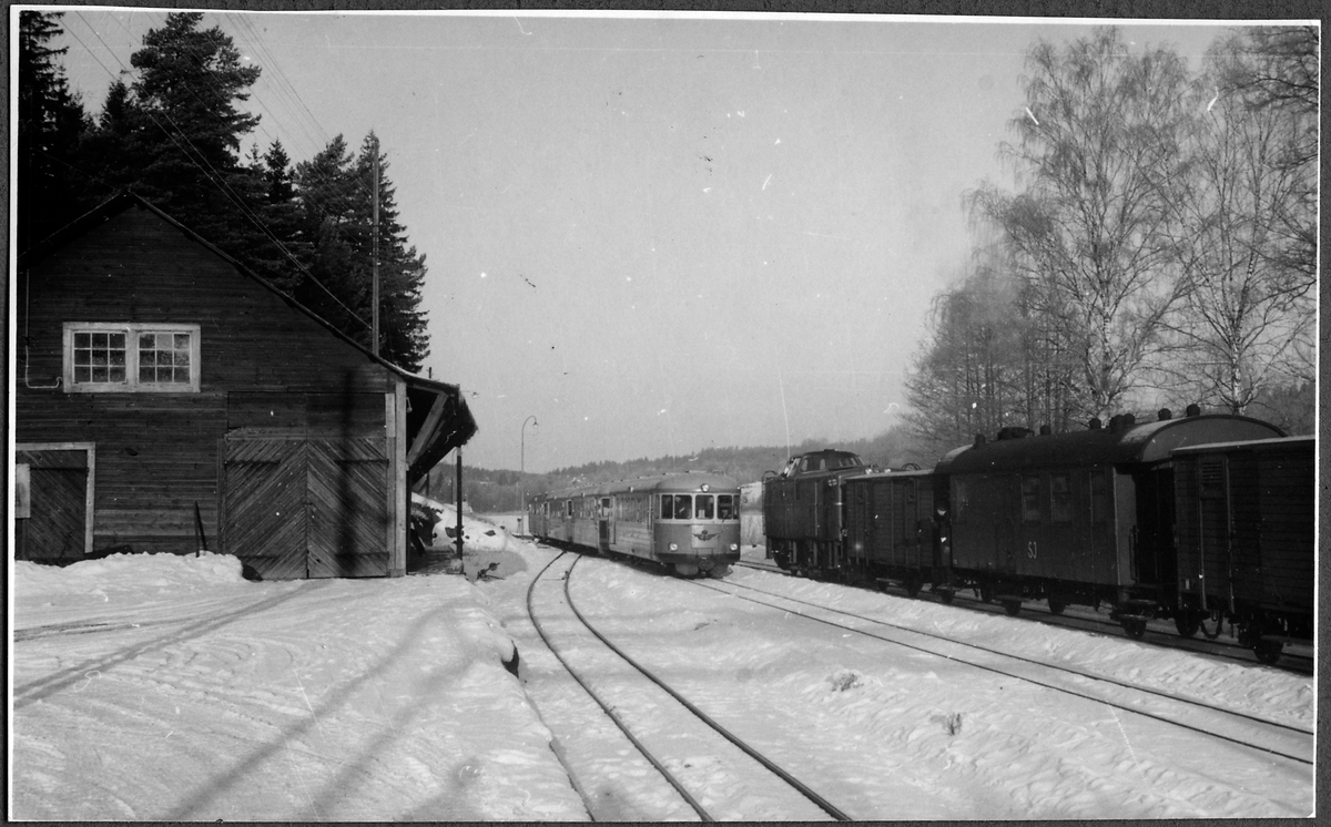 Tågmöte i Verkebäck, Statens Järnvägar, SJ YP och SJ Tp.