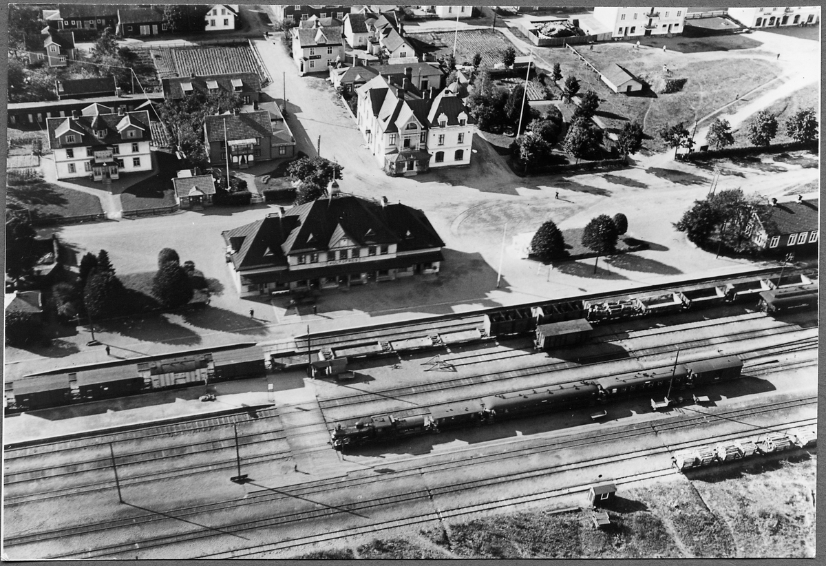 Norsholm - Västervik - Hultsfreds Järnvägar, NVHJ lok 10 med persontåg på Hultsfred bangård.
