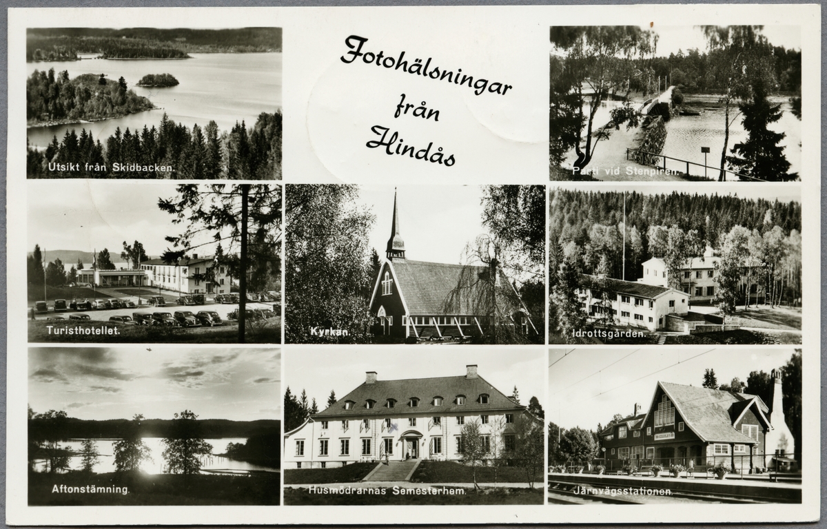 Hindås med järnvägsstation, kyrkan och turisthotellet.