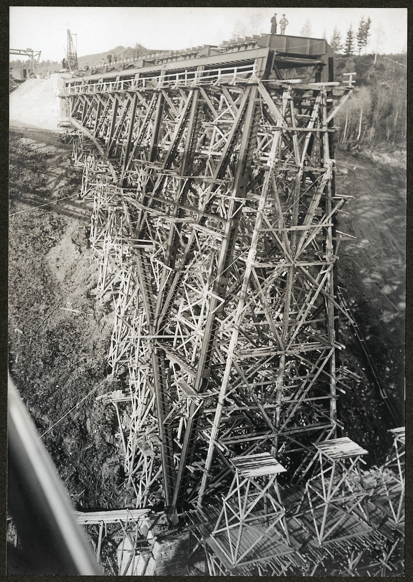Brobygge av järnvägsbron över Ångermanälven vid Forsmo.