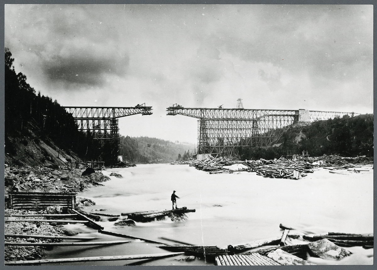 Brobygge av järnvägsbron över Ångermanälven vid Forsmo.
