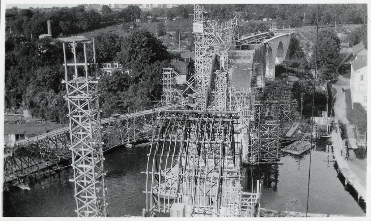 Vy över bygge av Årstabron.