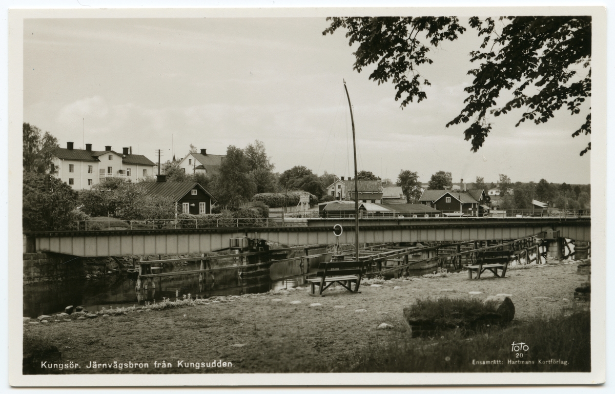 Järnvägsbron över Arbogaån i Kungsör sett från Kungsudden, på linjen mellan Kungsör och Valskog.