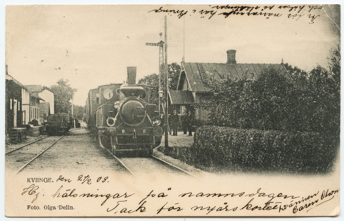 Östra Skånes Järnvägar, ÖSJ lok 8, ursprungligen Hästveda-Karpalunds Järnväg, HKJ lok 4 vid stationen i Kviinge, sedermera Hanaskog.
