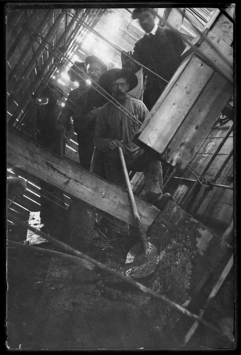 Betonggjutning av stora valvet för järnvägsbron över Öreälven.