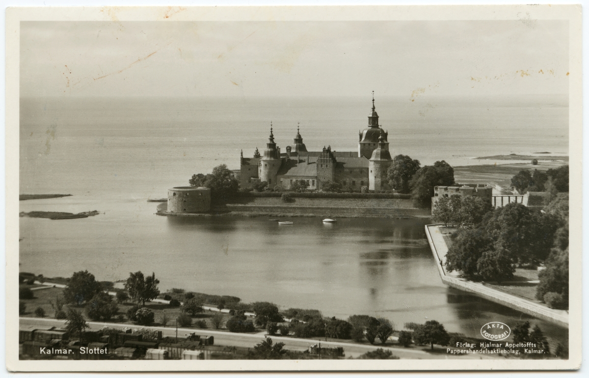 Kalmar slott och Kalmar Central bangård i förgrunden.