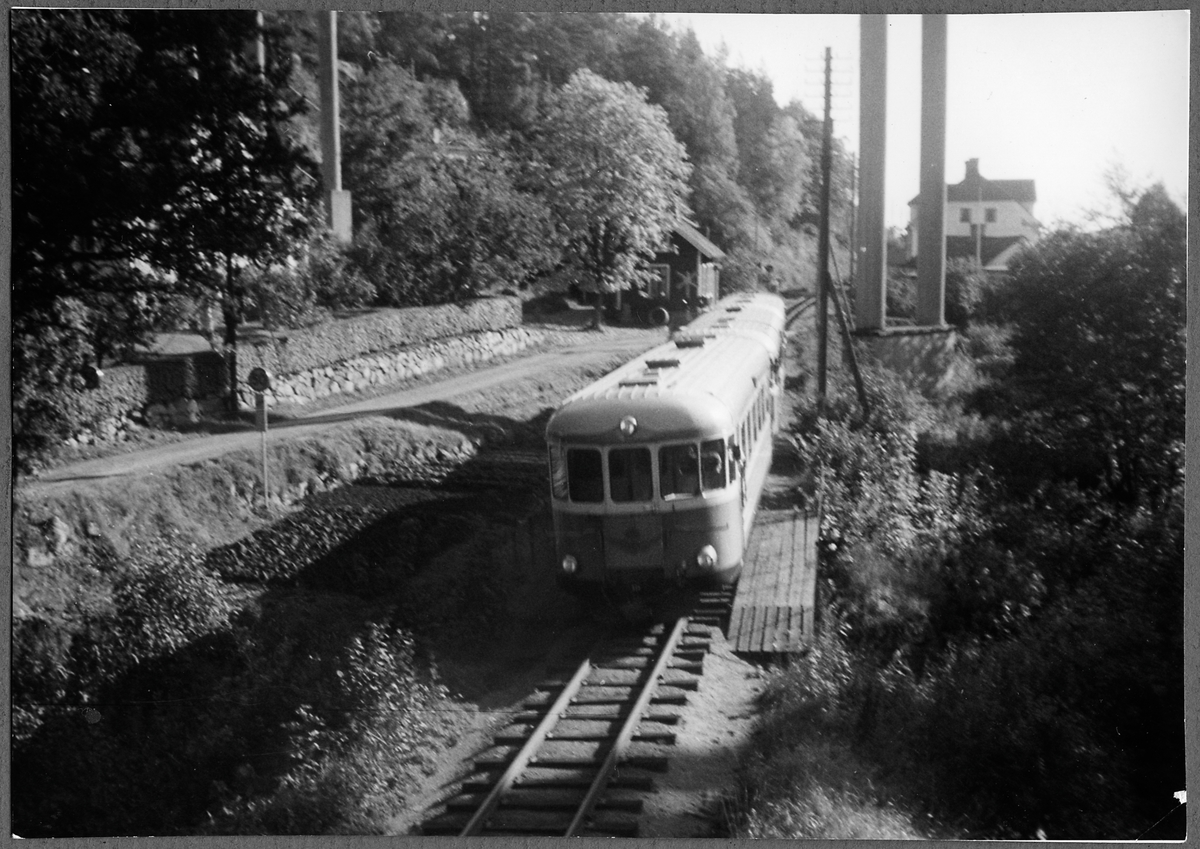 Statens Järnvägar, SJ motorvagnståg vid Verkebäck, på väg mot Hultsfred.