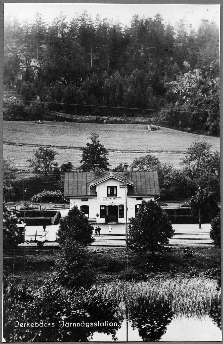 Verkebäcks station. Linbanan från Gunnebo bruk syns i bakgrunden.
