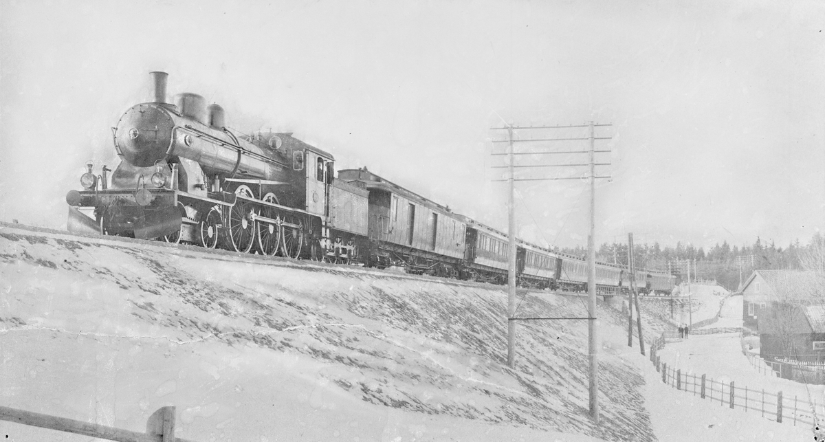 Uppsala - Gävle Järnväg, UGJ lok 23 med Snälltåg. Vagnarna SJ DF01, UGJ C0 54 och 55.