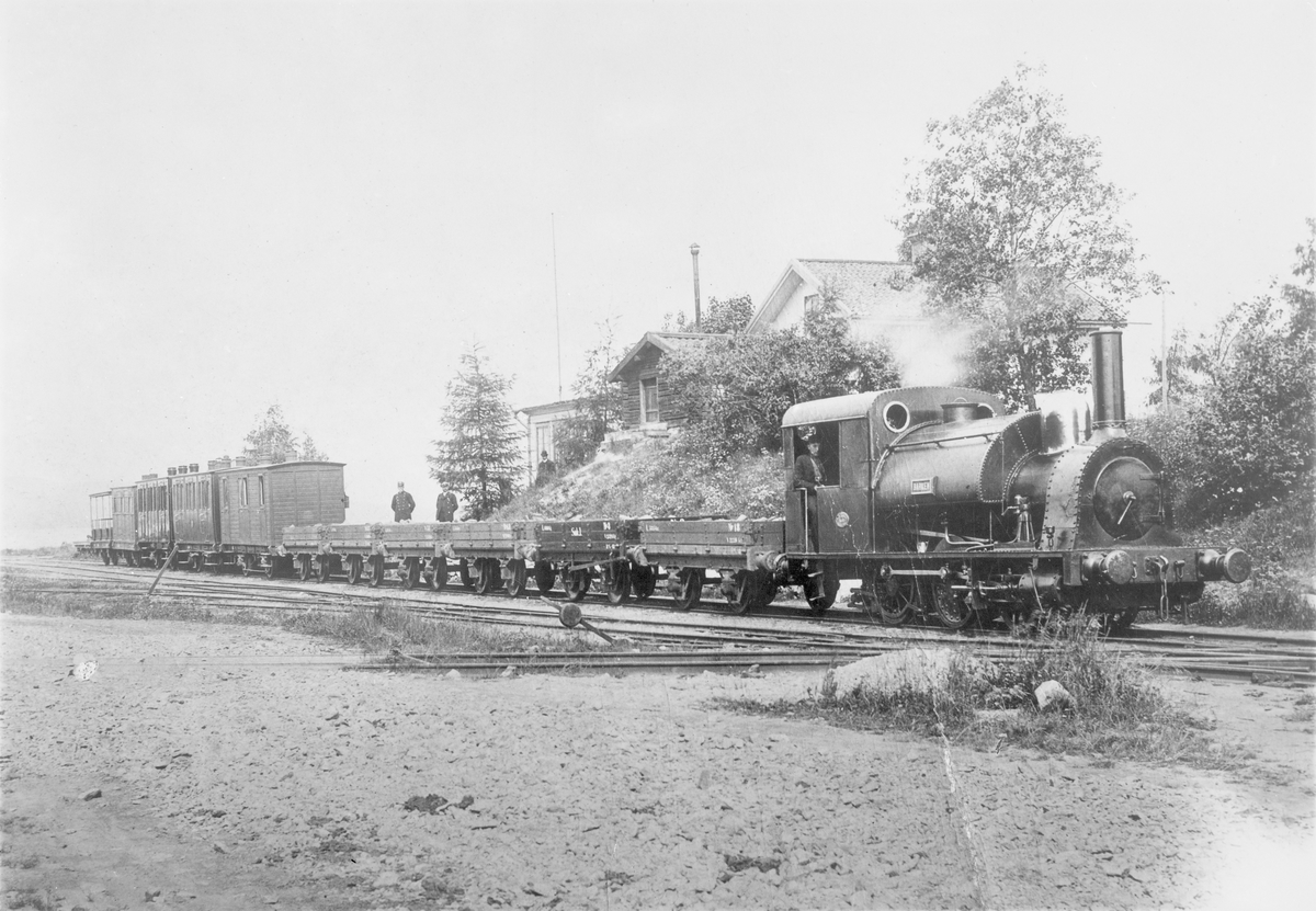 Wessman - Barkens Järnväg, senare Smedjebackens Järnväg, SmbJ, lok 2 "Barken." Marnäs station senare ändrad till Ludvika.