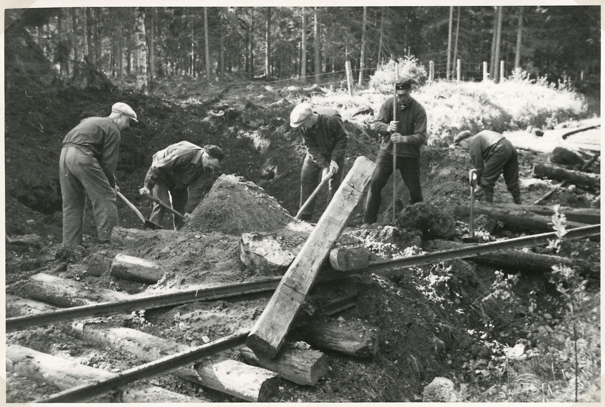 Bombningen vid Svartälvs Järnväg. Reparationsarbete.