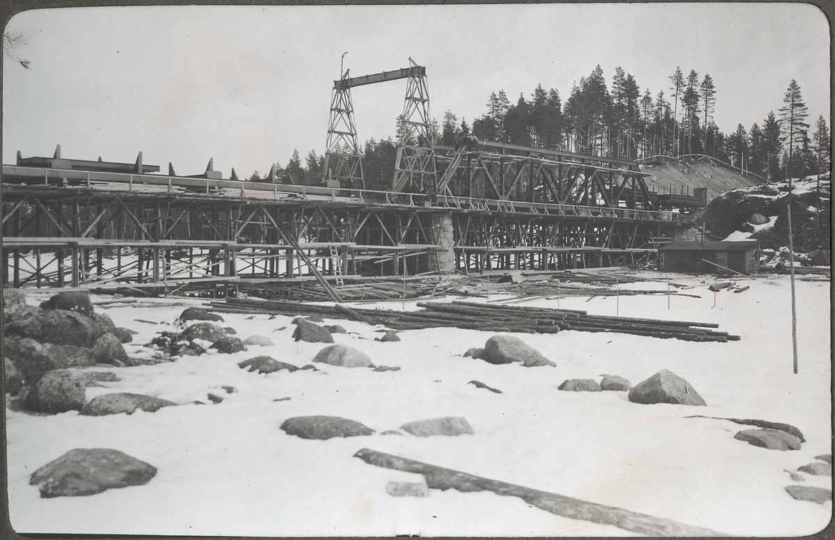 Bro över Vindelälven. Pelaren färdig juni 1921.