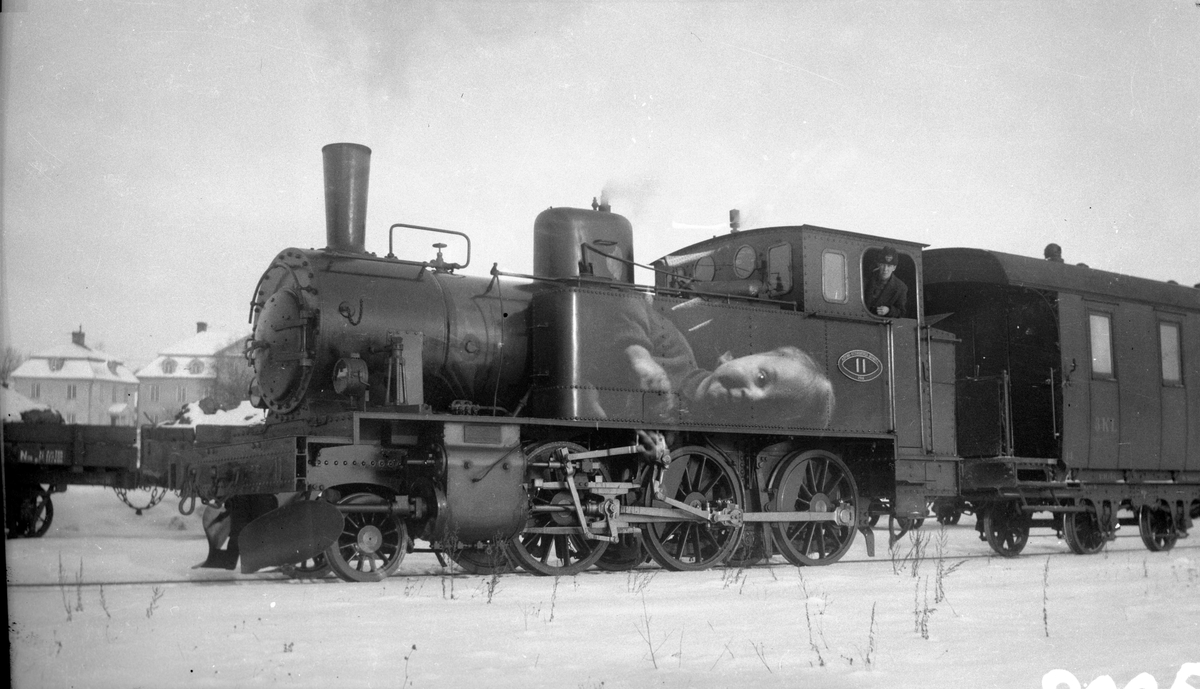 Köping-Uttersberg-Riddarhyttans Järnväg, KURJ lok 11 . Dubbelexponerat.