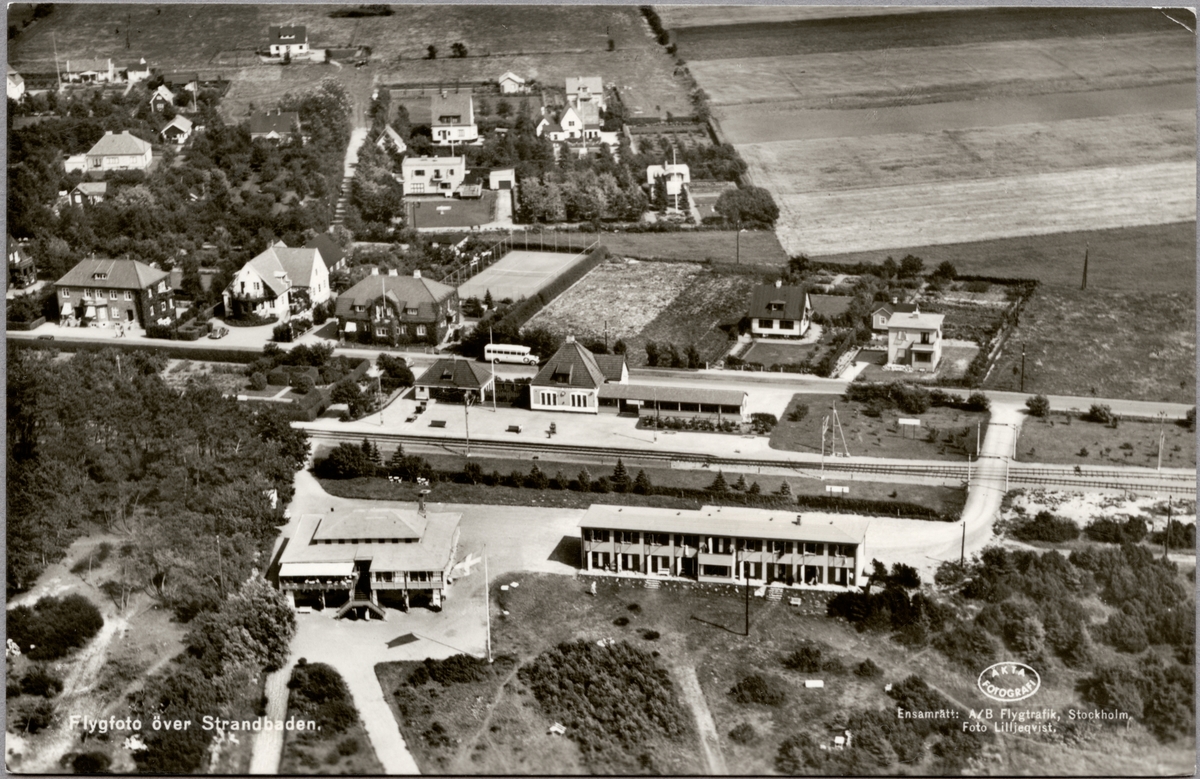 Flygfoto över Strandbaden station med omnejd.
