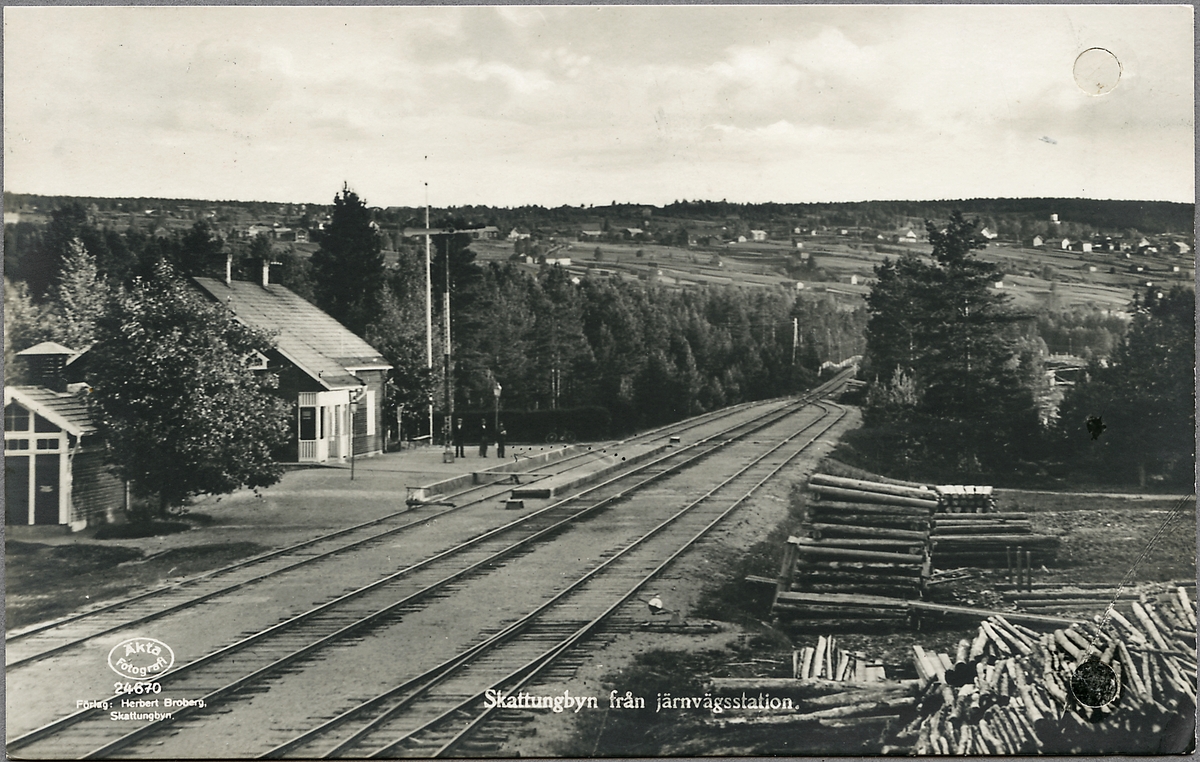 Järnvägsstationen i Skattungbyn. Dala - Hälsinglands Järnväg, DHdj.