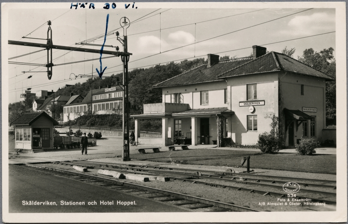 Järnvägsstationen och Hotellet Hoppet i Skälderviken. Skåne - Hallands Järnväg, SHJ.