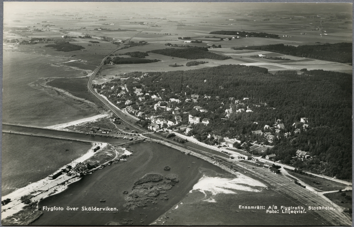 Flygfoto över Skälderviken. Skåne - Hallands Järnväg, SHJ.