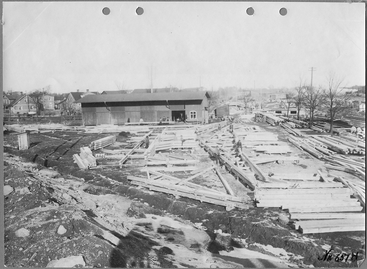 Ihopsättning av takstolar till gods och omlastningsmagasinet.