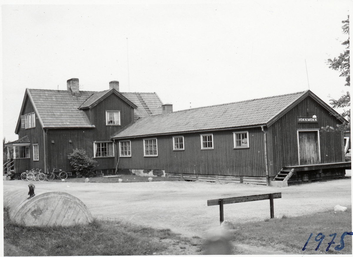 Jokkmokks stationshus med vidbyggt godsmagasin.