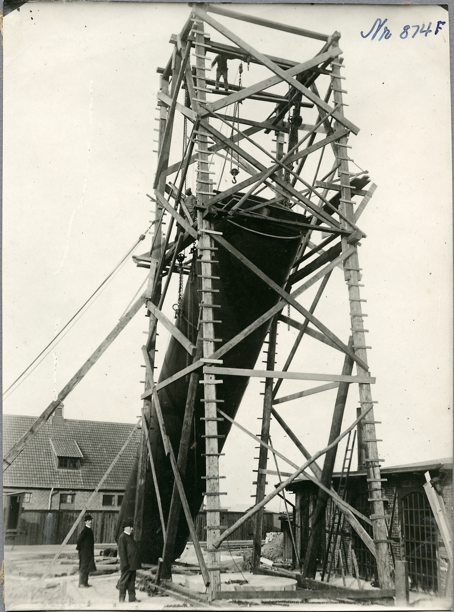 Uppförande av vattentornet i Helsingborg.