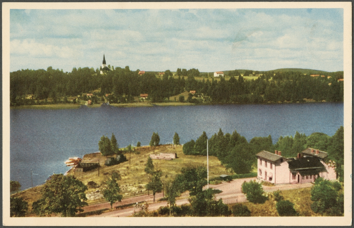 Fryksta. Stora Kils kyrka samt före detta järnvägsstationen.