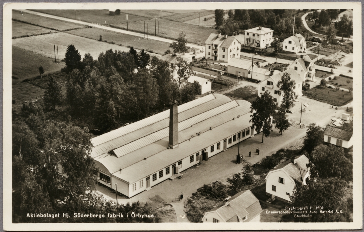 Flygfoto över Hjalmar Söderbergs syfabrik i Örbyhus.