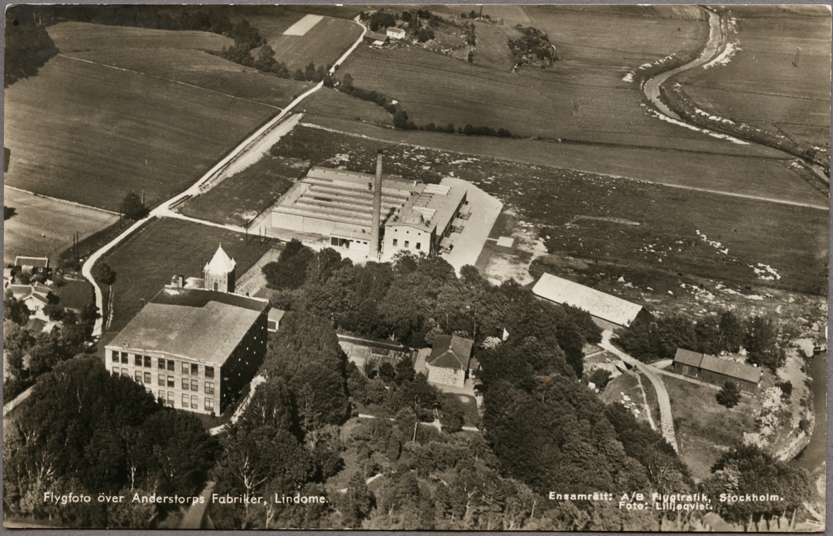 Flygfoto på Anderstorp textilfabrik, Lindome.