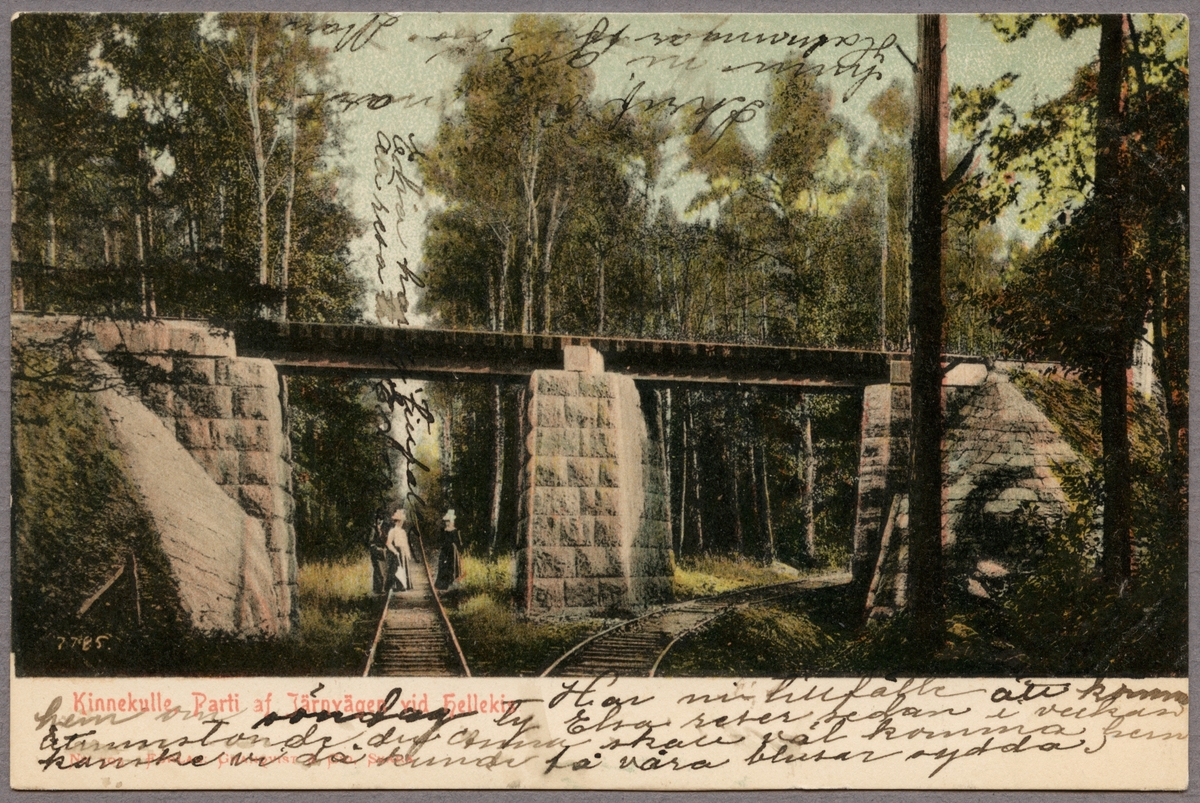 Man och kvinnor vid viadukt och spår.