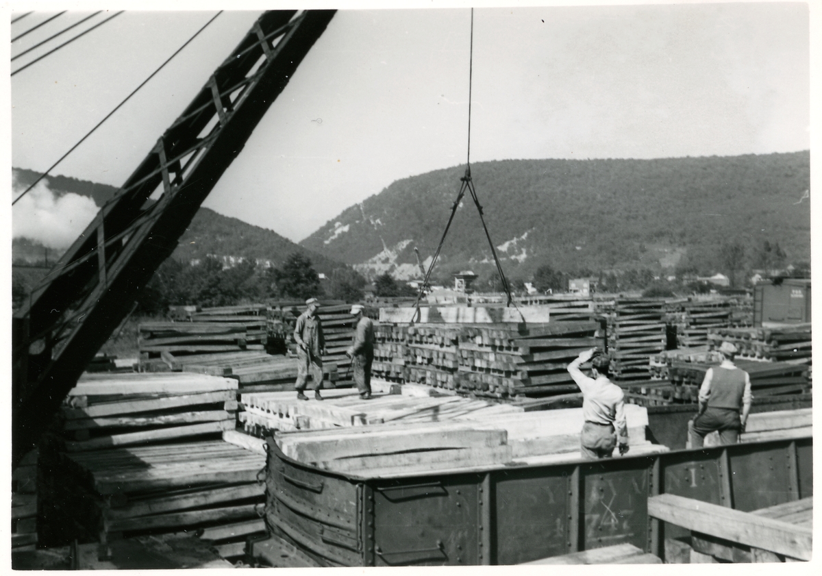 Titel: Lastning med kran. Bilder från Bantekniska kontorets studieresa i USA.