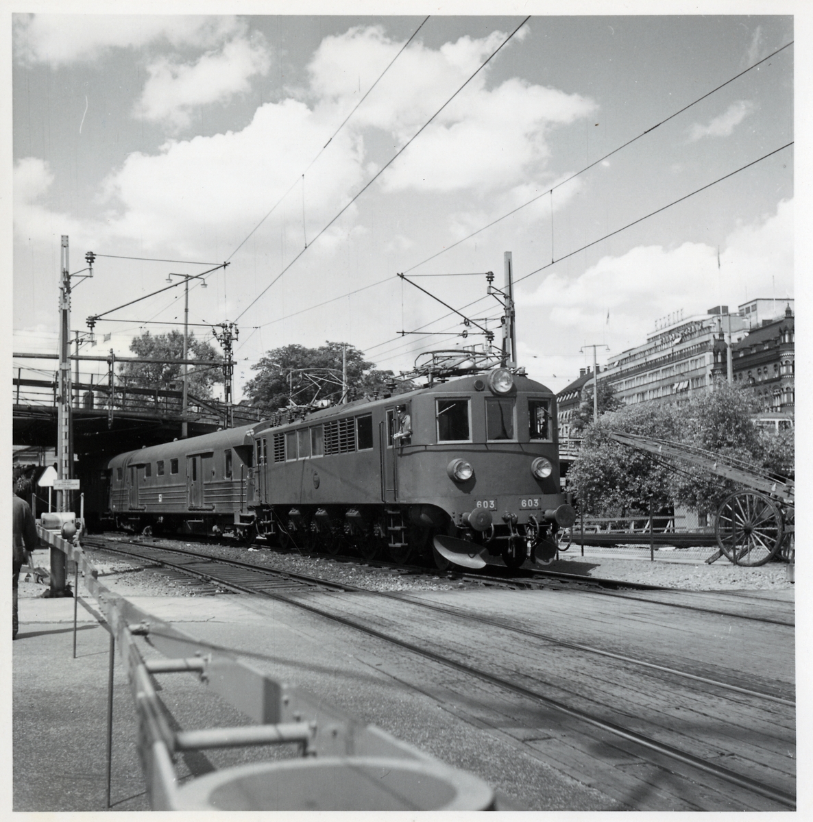 Statens Järnvägar SJ F 603 vid södra utfarten från Stockholm Central. 1952.