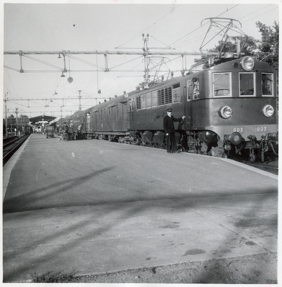 Snälltåg, Statens Järnvägar, SJ F 603 på Hallsbergs station.