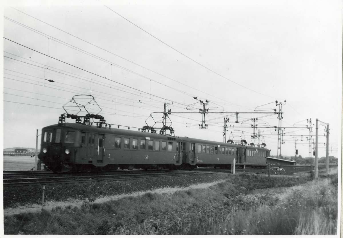 Titel: Motorvagn Statens järnvägar SJ Xoa-4, med tillkopplad mellanvagn och manövervagn på sträckan mellan Malmö - Arlöv.