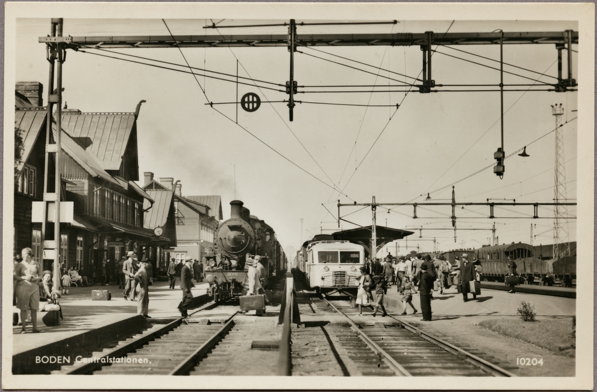Centralstationen i Boden, på stationen står Statens Järnvägar, SJ B 1290 samt en SJ Motorvagn.