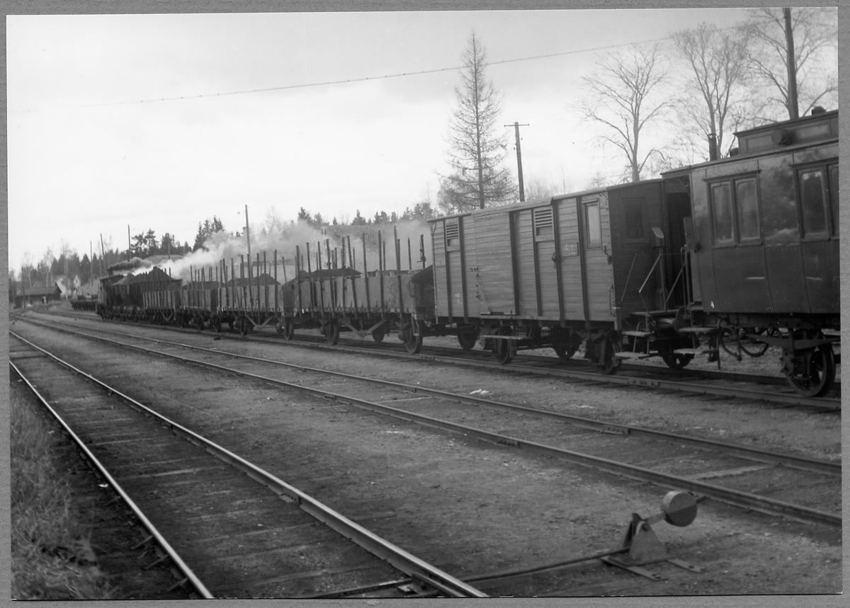 Titel: Reportagebild inför nedläggning av Krylbo - Norbergs Järnväg. KNJ G 103 och KNJ personvagn 4.