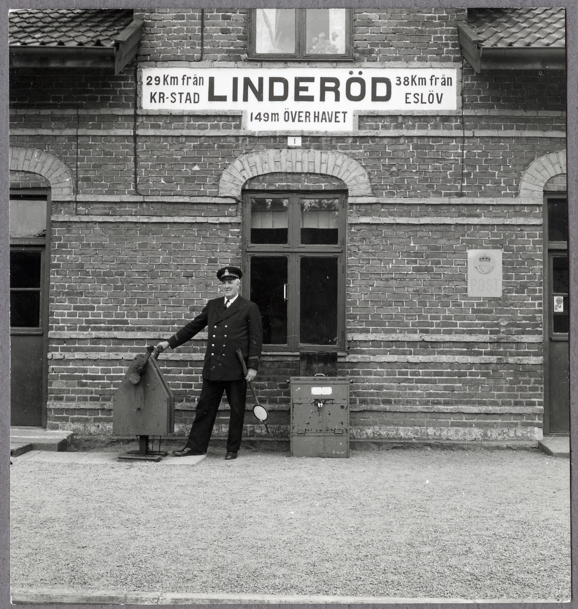 Stationsmästaren i Linderöd framför stationshuset.