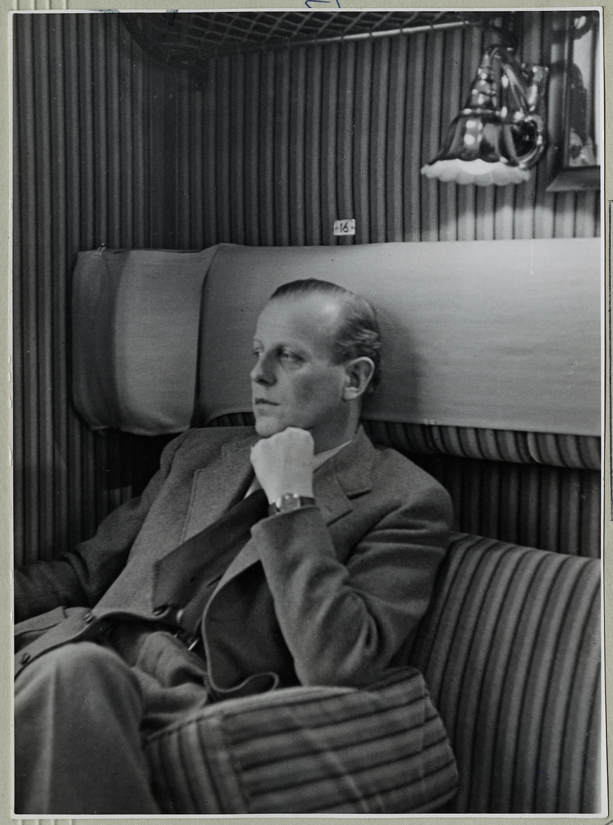 Titel: Man i personvagn.