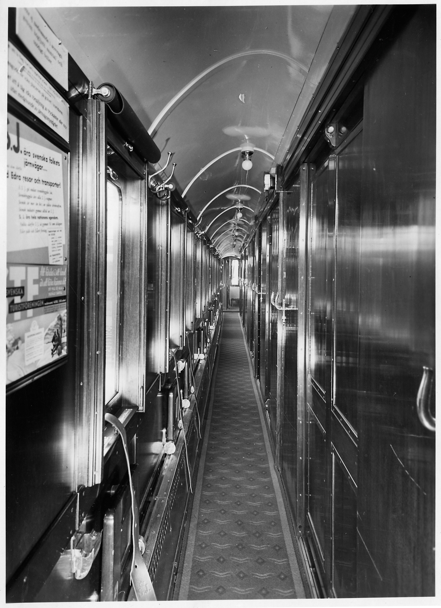 Korridor i 3-klass sovvagn, Statens Järnvägar, SJ C015.