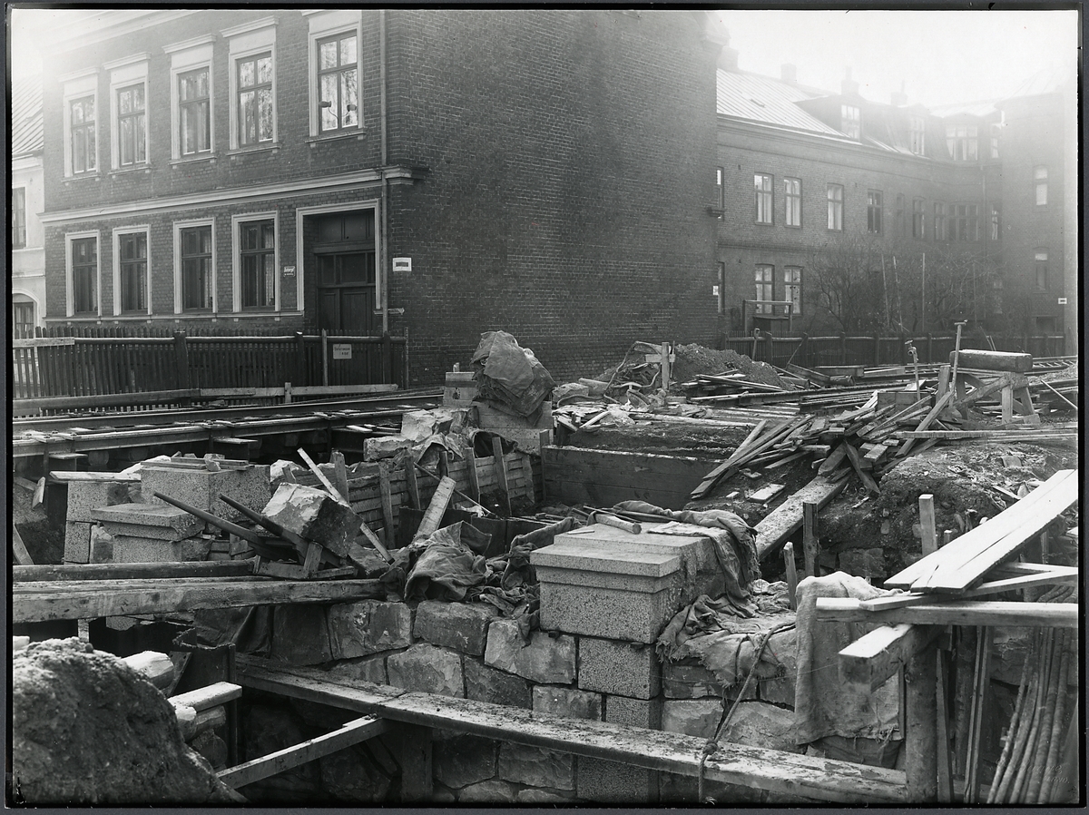 Byggnation av vägport över Trollebergsvägen i Lund. Södra landfästet till nedspåret färdigställs.