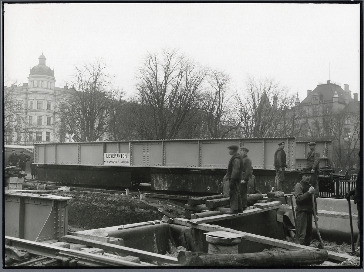 Lossning av bron för nedgående spår under byggnationen av vägport över Trollebergsvägen i Lund.