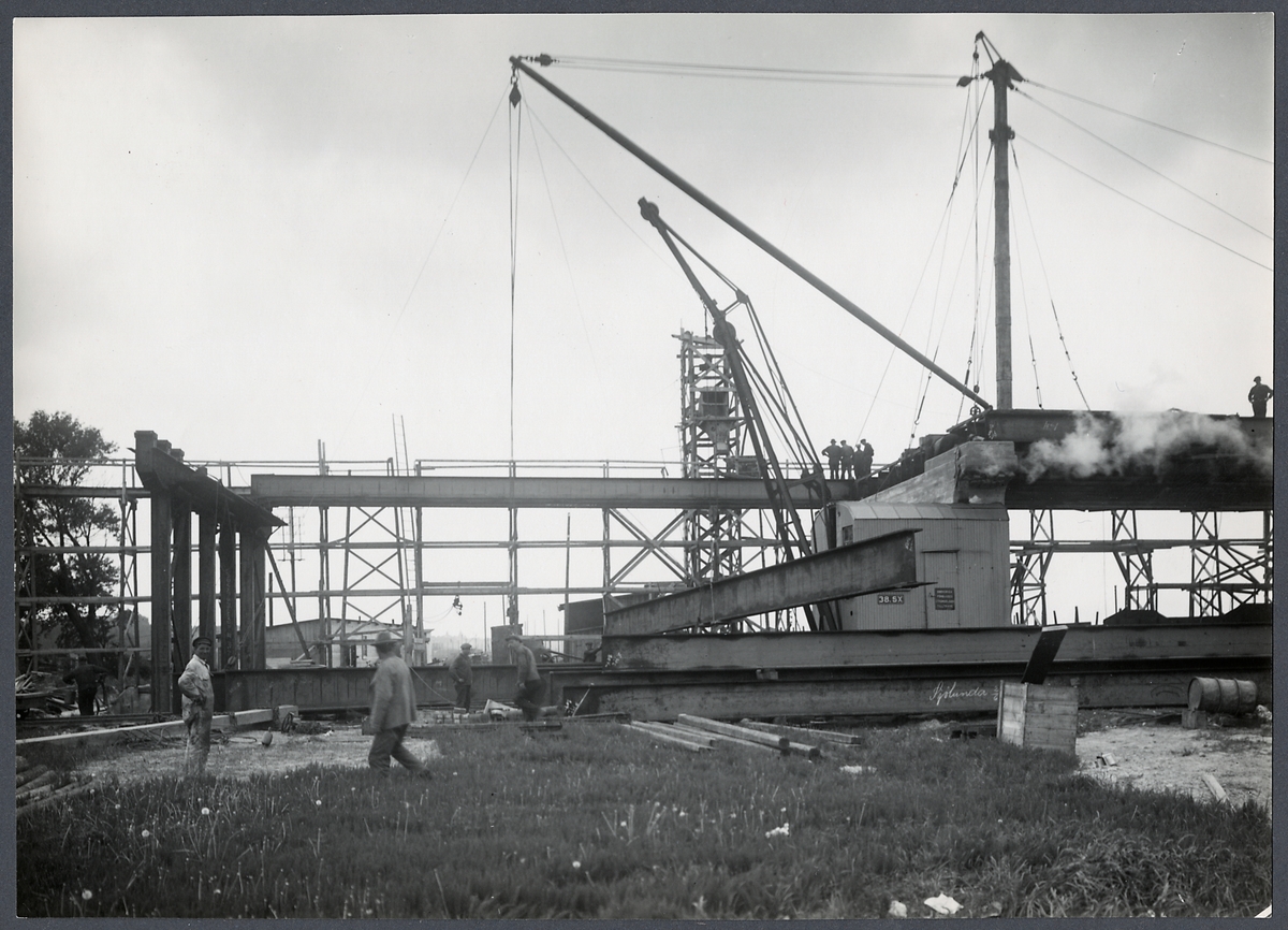Byggnation av Sjölundaviadukten, uppläggning av balkarna i spann 4.