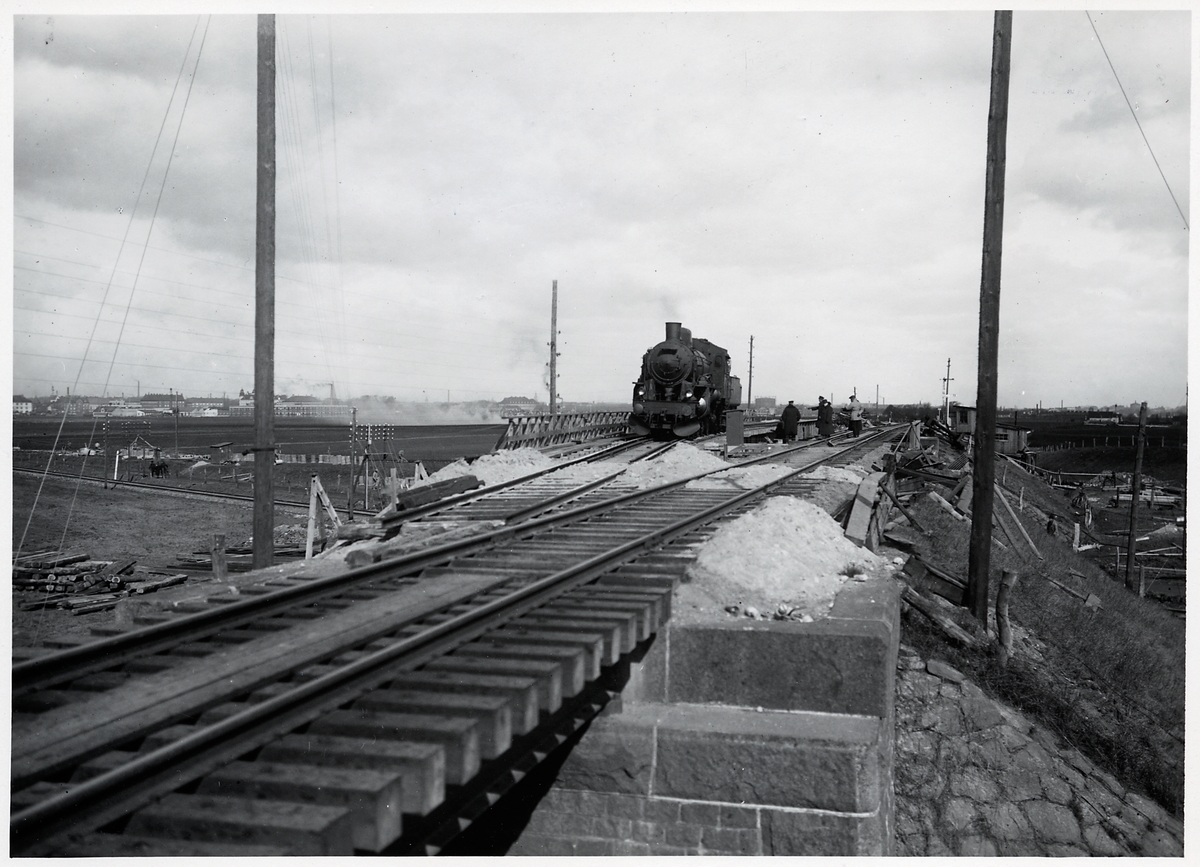 Ombyggnad av viadukten över Malmö Ystads Järnväg, på sträckan mellan Malmö och Trelleborg. Provbelastning av provisorisk viadukt.