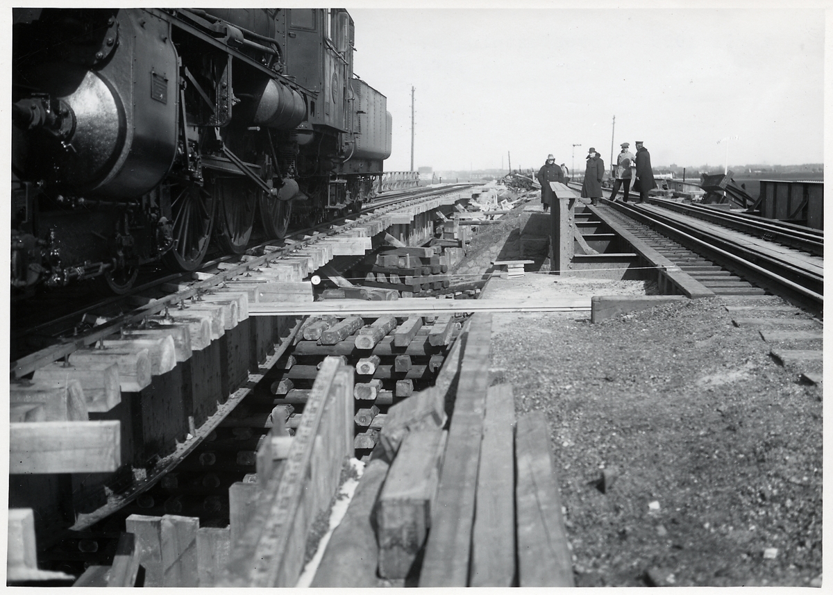 Provbelastning av provisorisk viadukt under ombyggnation av viadukten över Malmö Ystads Järnväg, på sträckan mellan Malmö och Trelleborg.