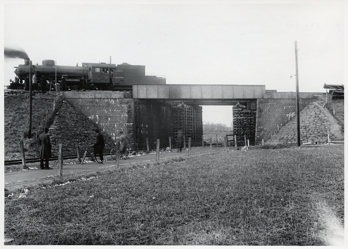 Provbelastning av provisorisk viadukt under ombyggnation av viadukten över Malmö Ystads Järnväg, på sträckan mellan Malmö och Trelleborg.