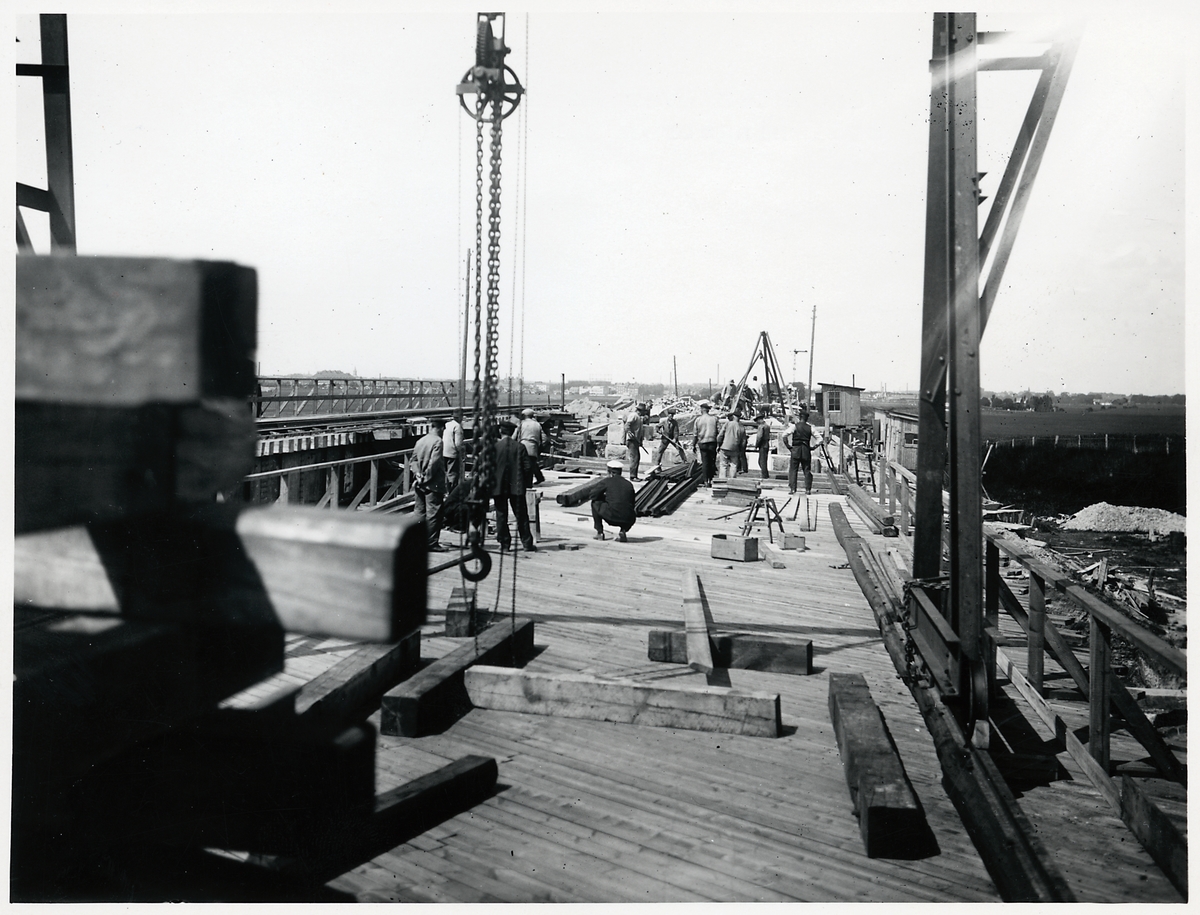 Ombyggnad av viadukten över Malmö Ystads Järnväg, på sträckan mellan Malmö och Trelleborg. Ställningsbron nästan färdig.