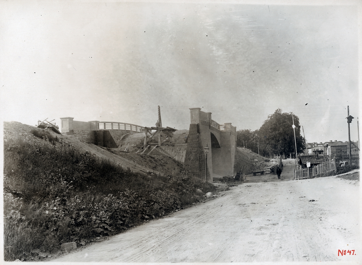 Byggnation av vägbro över järnvägsspår, på sträckan mellan Norrköping och Östra Eneby.