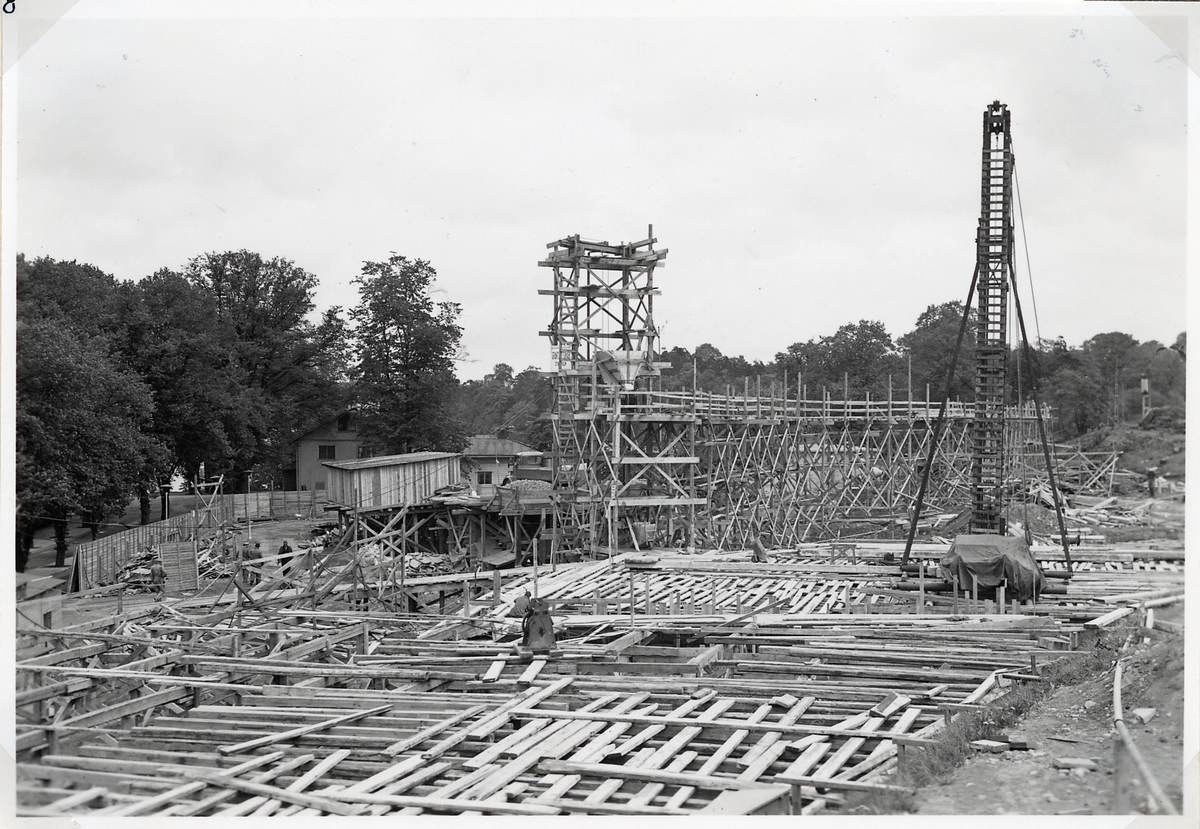 Transportbanan från betongblandarstation, vid byggnationen av ny järnvägsviadukt över Norrtullsgatan.